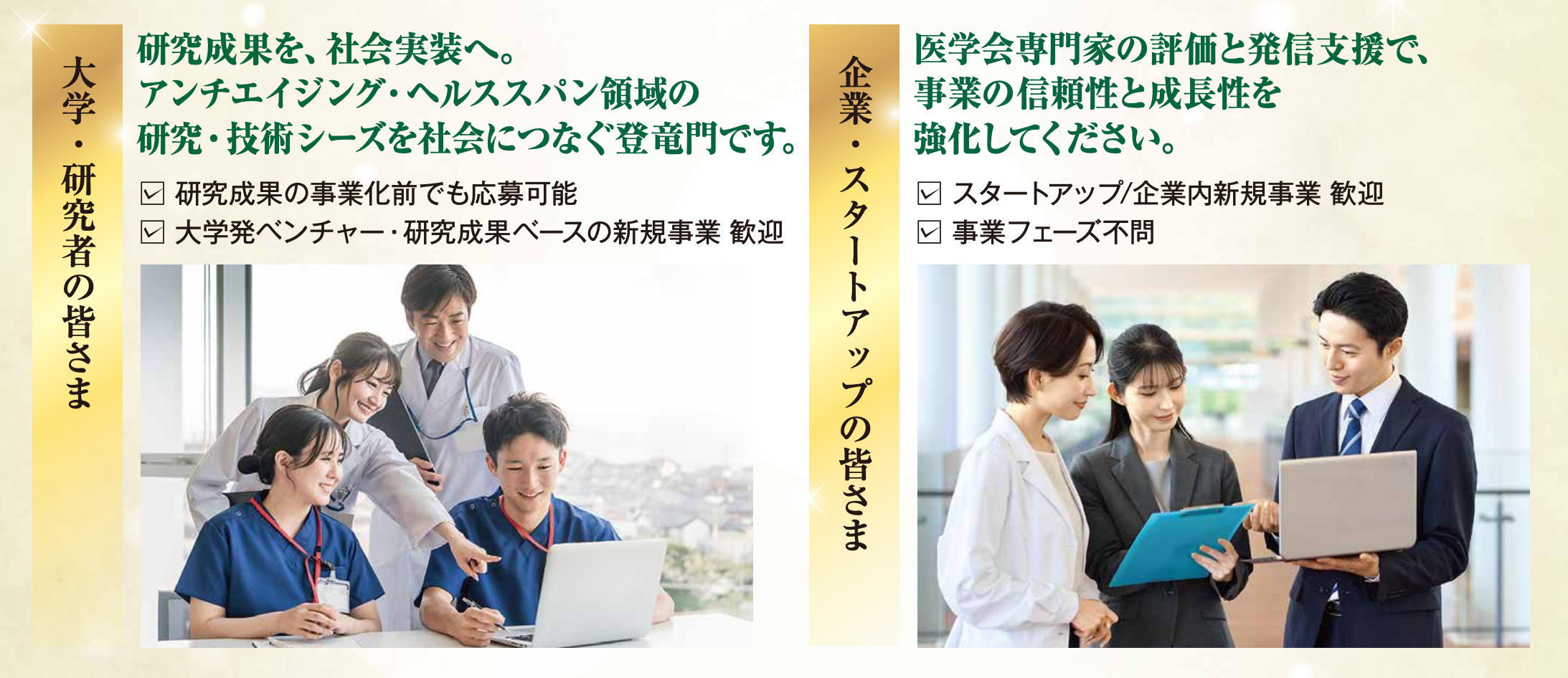 ファイナリスト企業を「日本抗加齢協会認定スタートアップカンパニー」に認定します。